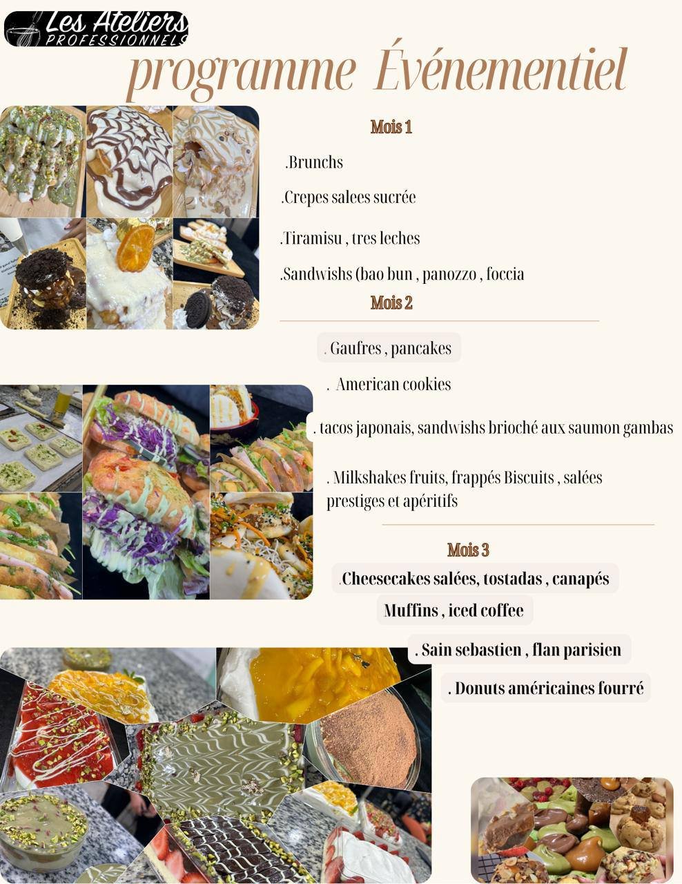 برنامج عملي مميز موجه لأصحاب المقاهي والمطاعم، وأيضًا لمحبي الطبخ، لتعلم تحضير الكريب، الوافل، الكوكيز ,المالح وأفكار مبتكرة للبرانش.